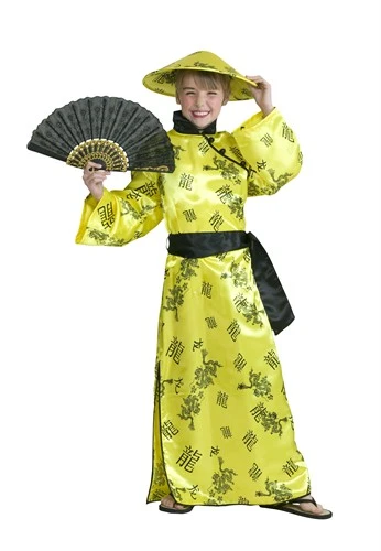 Chinagirl (Satin), richtig chinesisch für Karneval, Fasching oder Motto Party. Wie in China, auch erhältlich für Erwachsene. Das Kostüm enthält ein Kleid und eine Schärpe.