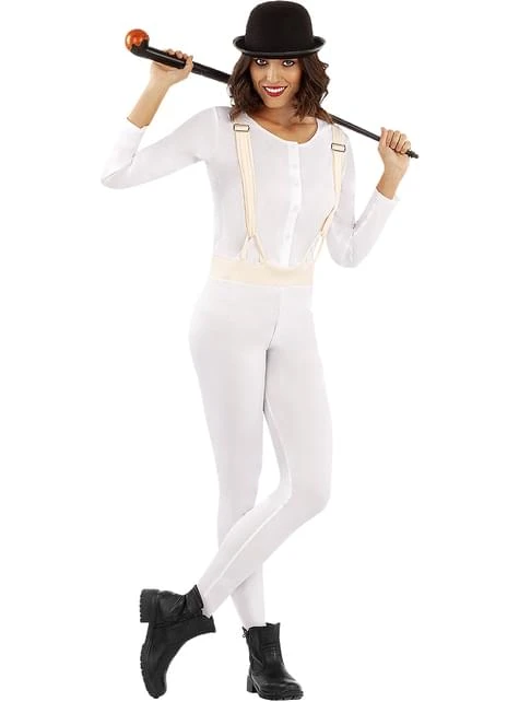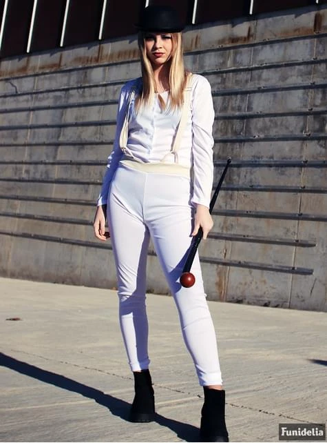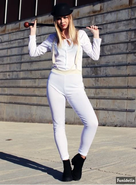 Diesem Film von Kubrick ist es gelungen, eine Ästhetik zu schaffen, die so charakteristisch ist, dass dieses Kostüm leicht zu erkennen ist. Schwarze Melone, Augenschminke und ein weißer Overall mit Trägern bilden das perfekte Uhrwerk Orange Kostüm.